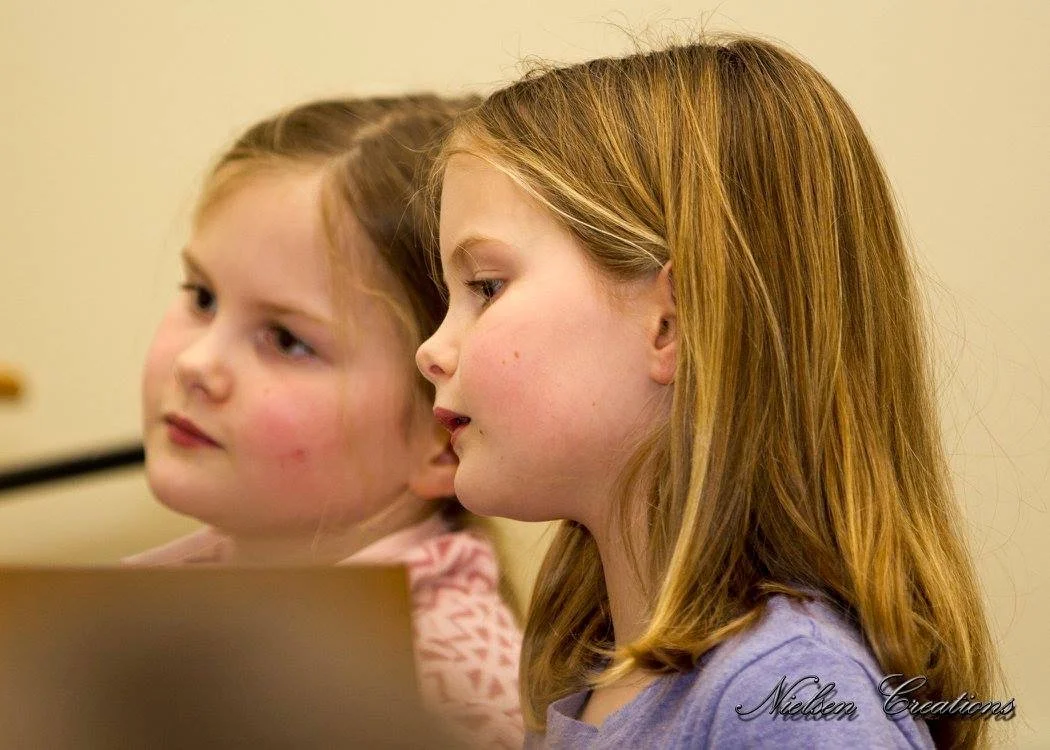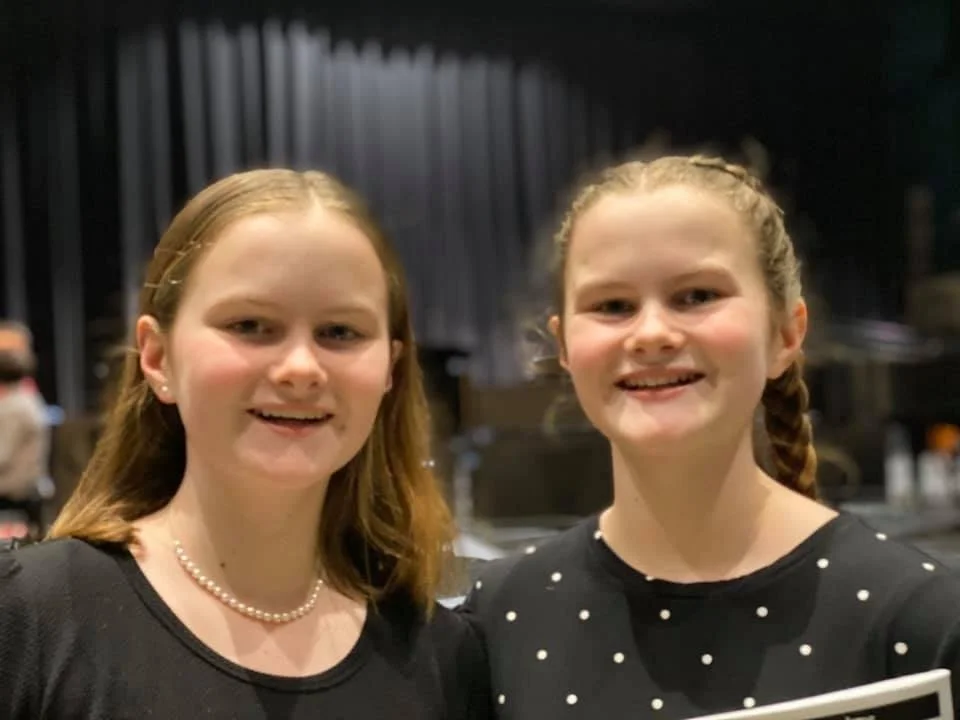 Lucy and her twin sister Winnie playing a duet together in 2017